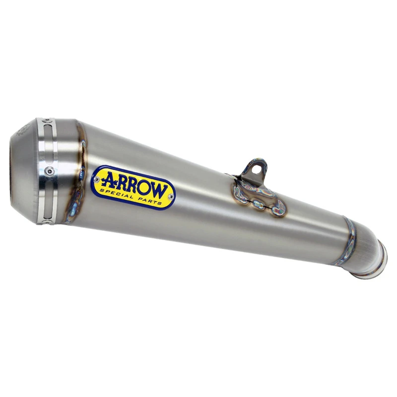 The silencers are secured to the bike by means of mounts welded to the main body, their cone-shaped design provides a reduction of dimensions and weight, but it also reduces the overall volume of the exhaust, thus limitating noise damping capabilities and the application on bigger or demanding engines.