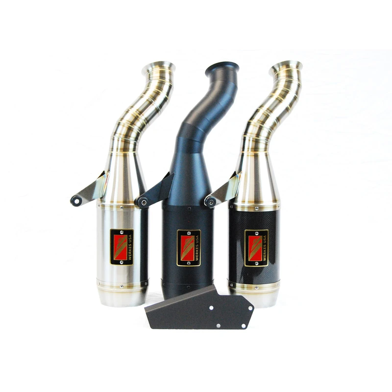All of Competition Werkes Exhausts are TIG welded by hand in the USA, resulting in a decidedly custom look reminiscent of modern GP machines. Only high-quality, laser-cut 304 stainless steel is used due to its durability and rust resistance.