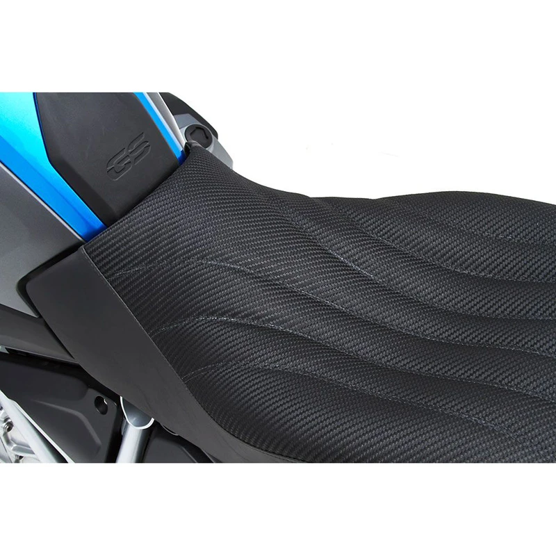 - Dual Sport saddle offers a slight bucket shape to eliminate hot spots yet is shaped to allow rider to move on the bike for off road riding.