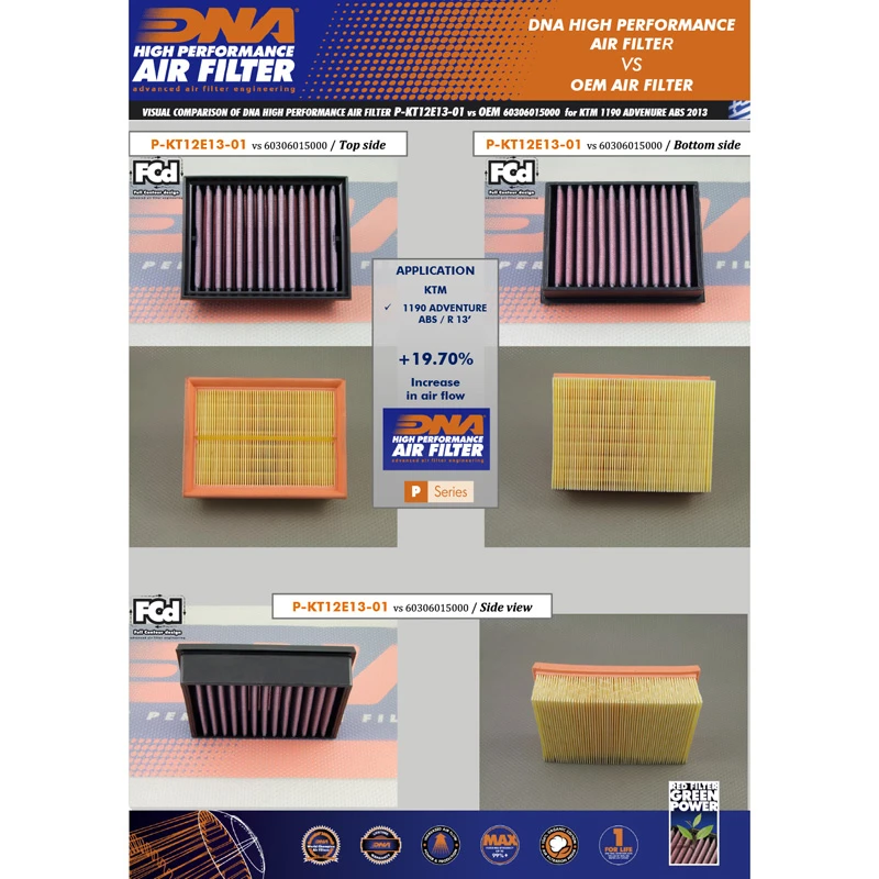 - The DNA filter has a 17.02% higher airflow than the Aprilia stock paper filter!