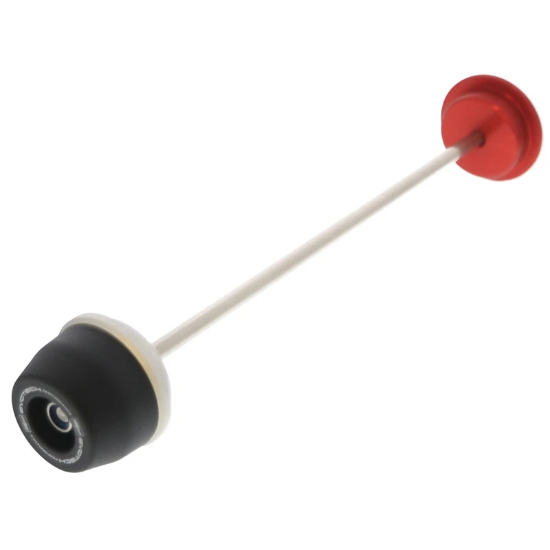 The EP Spindle Bobbins Kit for the Ducati Multistrada V4 Pikes Peak guard the lower front forks, brake calipers and rear swingarm from costly damage. Should an incident occur, the robust materials are designed to take impact first. Furthermore, the innovative Evotech Performance design ensures the nylon bobbin heads can rotate above the aluminum to reduce wear on the part and stress on the wheel. At the rear, the single sided swingarm is protected using our signature bobbin whilst the spindle rod is secured through the wheel by an anodised red hub stop.