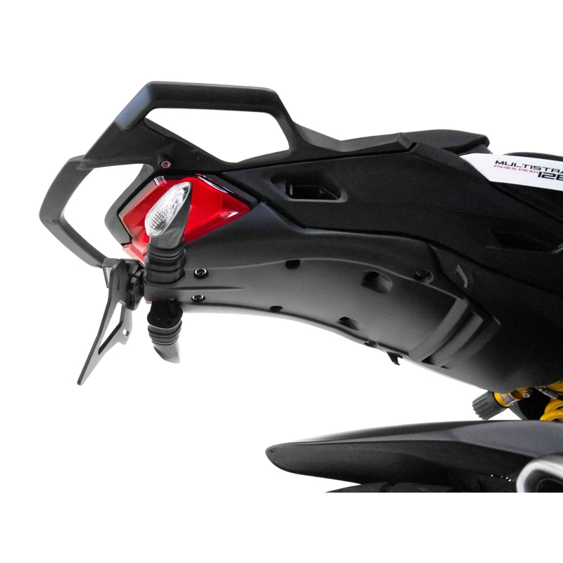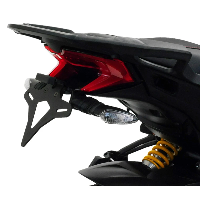 - CNC machined and formed aluminum replacement rear light mounting bracket, indicator mounts and number plate support.