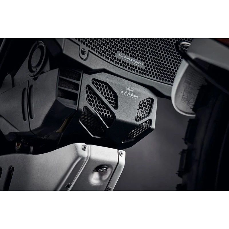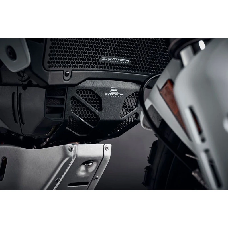 - Evotech Performance Skid Plates fit using the existing mounting points on the bike.