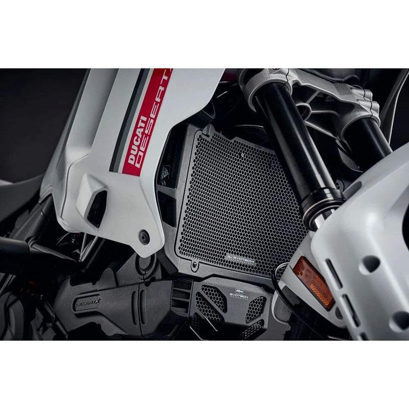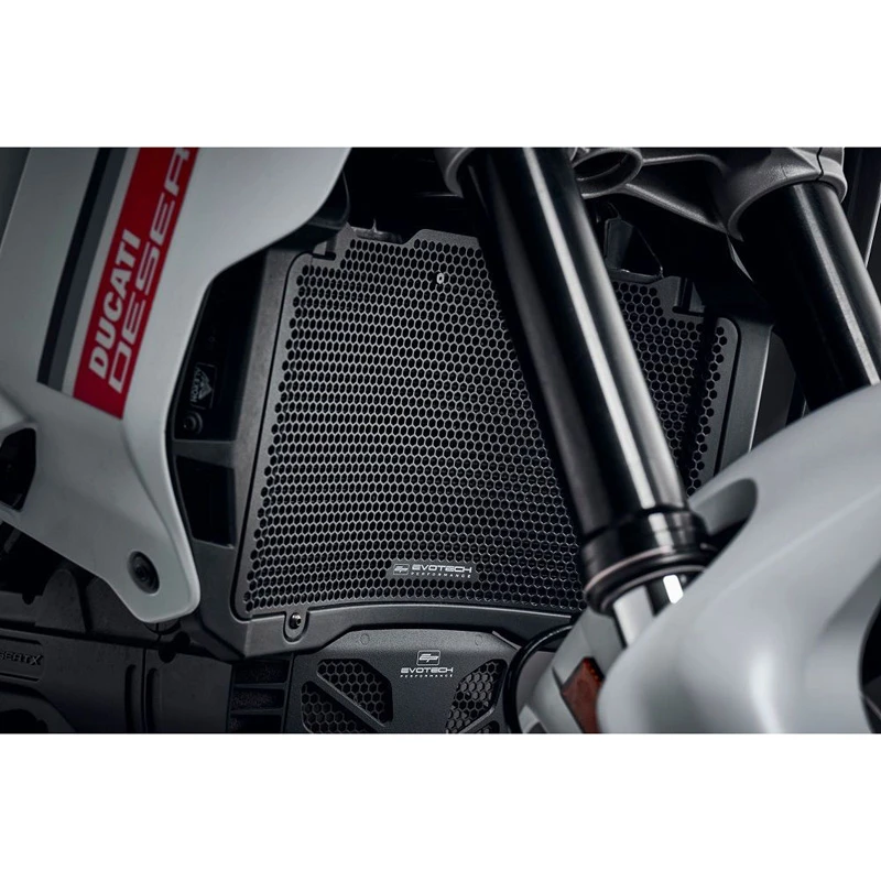 - Evotech Performance Ducati radiator guards are fixed in position using the existing mounting points on the bike.