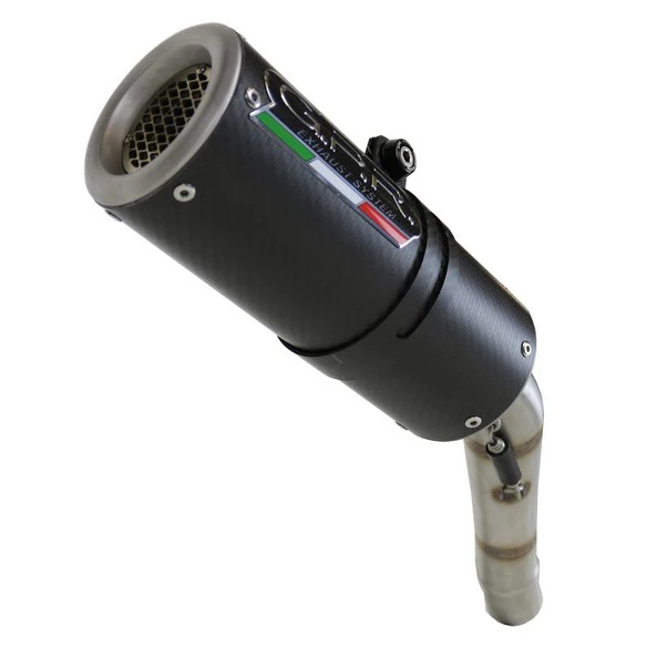 Developed from GPR thanks to Moto 3 and SBK races experiences, the system has a round shape Diam.100; weight about 1.55 kg depending from motorbike of destination. GPR provide original homologation documents and instructions available as drawings or video or pictures books. If item is used in homologated configuration it doesn’t require mapping, it is possible use panniers and central stand and sonda lambda boss is included when necessary. Available many sound file and pictures gallery, product is hand made in Italy, produced under European directives, it is street legal and it has 2 years of international warranty.