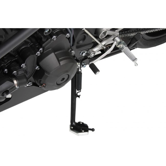 Side Stand enlarger that will help keep your bike from falling over or sinking into the ground. This enlargement is made of aircraft grade aluminum and offers a 100%+ increase in size.