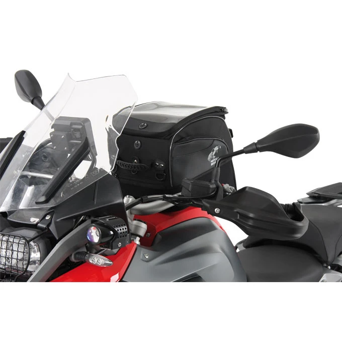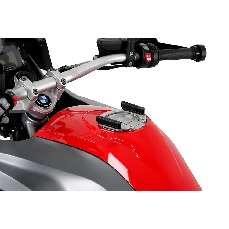Hepco & Becker’s Tank Ring is the mounting plate needed to equip your bike with a Hepco & Becker tank bag. The tank ring is mounted to your bike’s filler cap with screws and features a magnetic base for the bag to attach to. The magnets from the bag and tank ring come together to form a strong bond only broken when deliberate force is applied. The tank bags are currently available from Hepco & Becker.