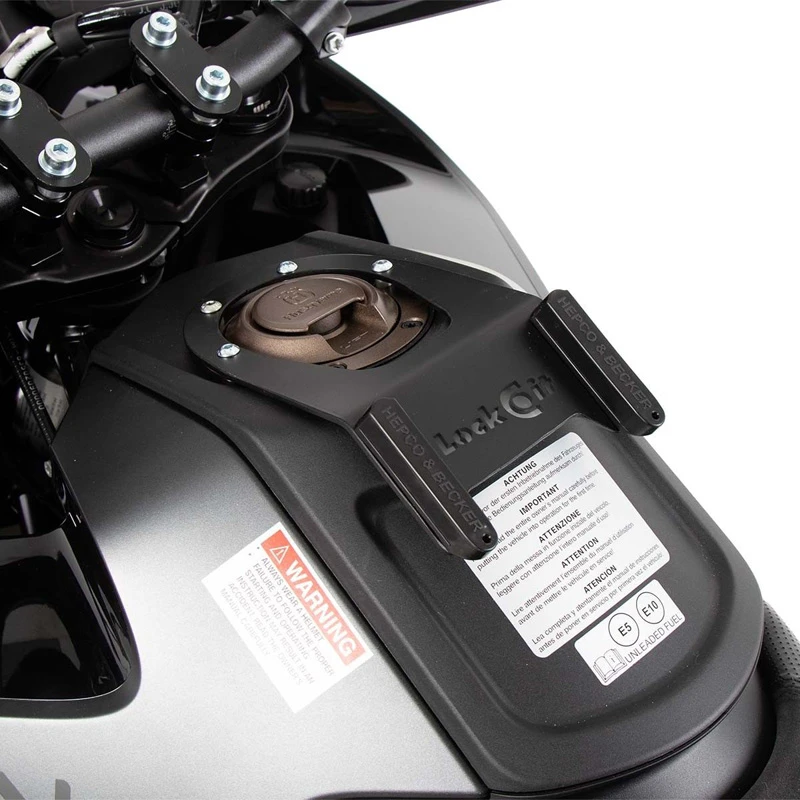 The Tank Ring from Hepco & Becker is the mounting plate needed to equip your bike with a Hepco & Becker tank bag. The tank ring is mounted to your bike’s filler cap with screws and features a magnetic base for the bag to attach to. The magnets from the bag and tank ring come together to form a strong bond only broken when deliberate force is applied.