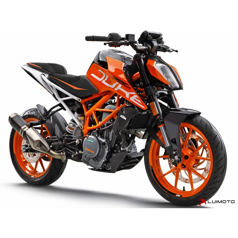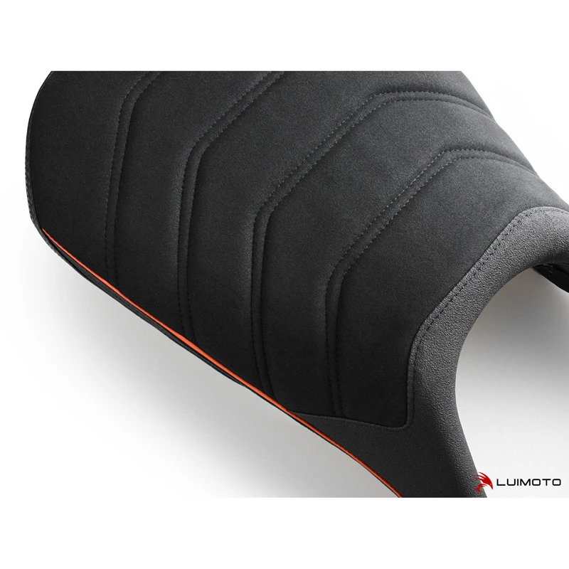 Luimoto’s 11151101 R Rider Seat Cover, Suede Black/Tec-grip/Dark Orange/Cf Black/White Stitch is made specifically for KTM 125 / 390 Duke (2017-current).