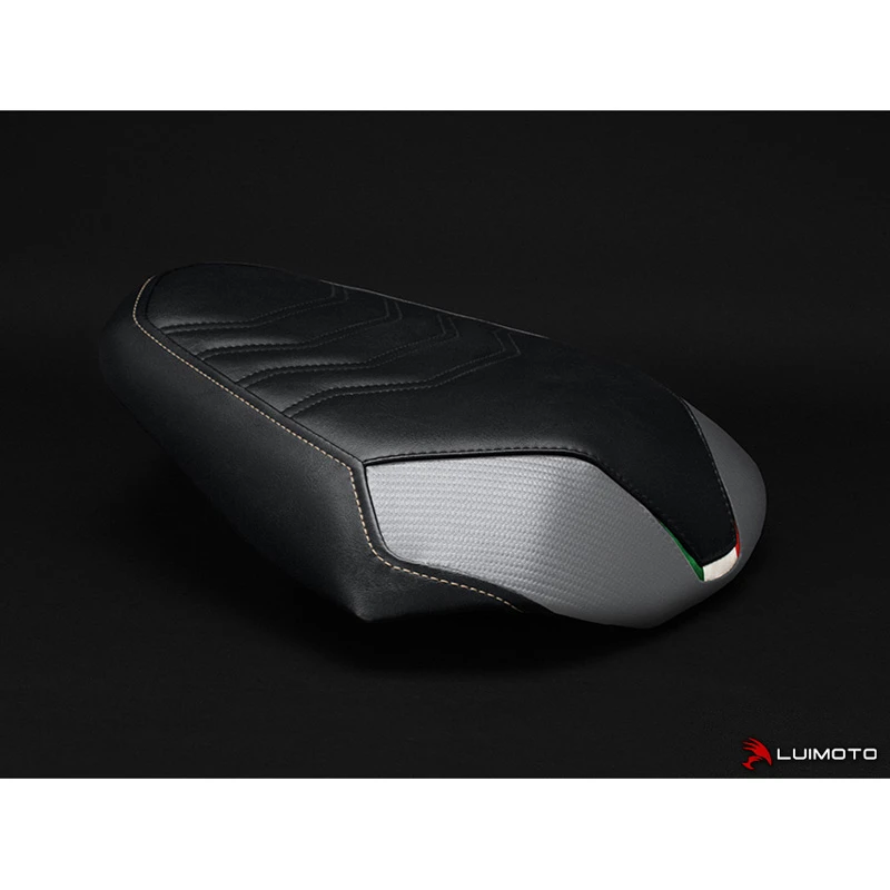 Introducing the Team Italia seat cover for your Multistrada Enduro! The riding surfaces are stitched with an unique technical ribbing pattern to add distinctive style to your ride. The seat cover is hand-made with highly durable Marine-grade synthetic leather, and carbon fiber look materials. An angular italian flag finishes off the look. Stand out with the finishing touch of Luimoto.