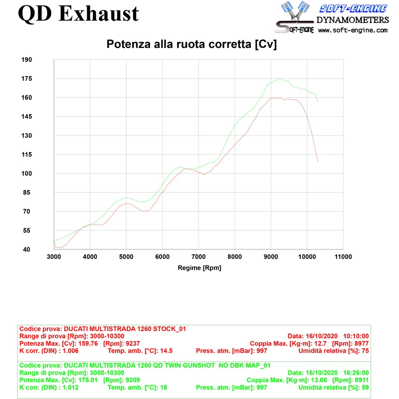 - The system uses the first part of the stock manifolds and has a 2 in 1 in 2 layout with 52/63/53 mm diameter. The mufflers are from the GUNSHOT series with tianium cans and thermo-injected magnesium end caps. The power gain is + 15 HP at the mid range. The system is street legal with EURO4 certification valid allover the European territory with catalyst and removable db-killers