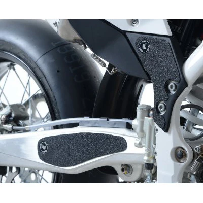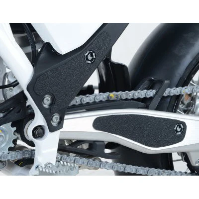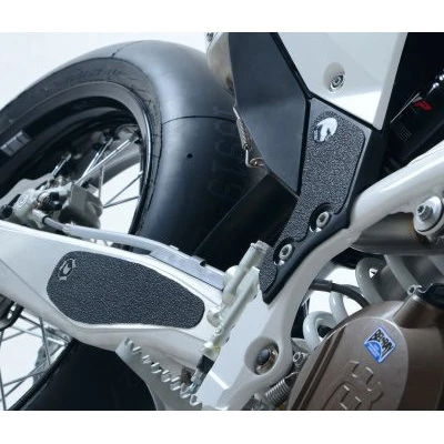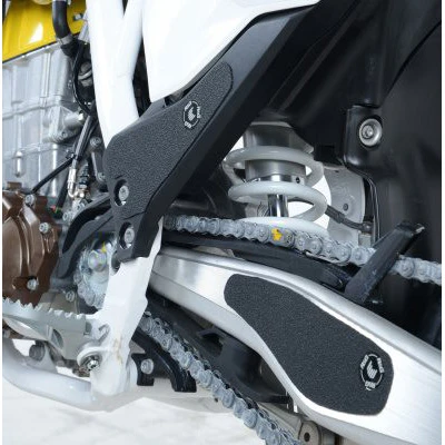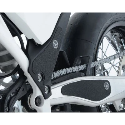 Prevent unwanted and unsightly scuff damage to your swingarm or footgear with this R&G boot guard kit. The uniquely designed texture was designed to be durable and provide the rider with a buffer between their boot and the exposed areas of the swingarm and frame. The rubbing that occurs between them during cornering and braking maneuvers causes wear and damage to the swingarm and footwear, both potentially expensive to repair.