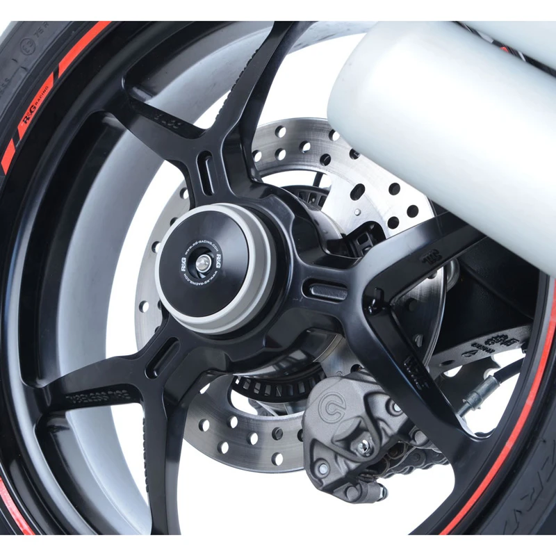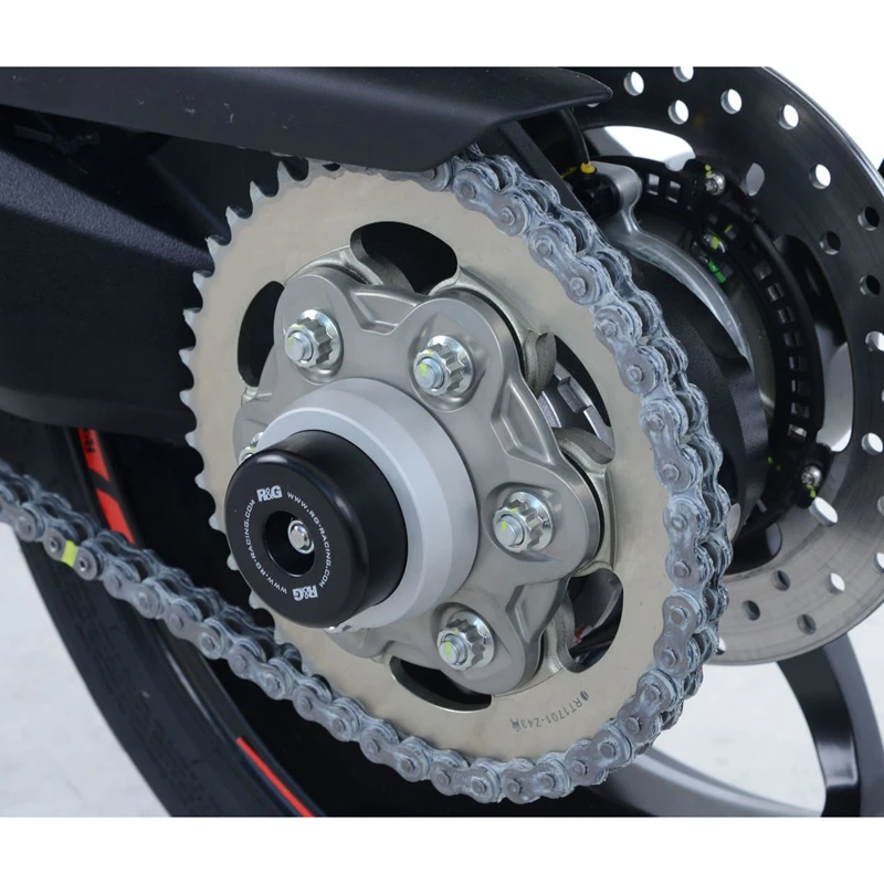 Keep the rear axle housing safe, shiny and clean with the R&G Rear Axle Slider & Spindle Blanking Kit for Ducati Monster 1200S & SuperSport. With a silver spacer and black cap tastefully adorned with R&G graphics, this cap will add style as it keeps out dirt and debris. With a high density polyethylene crash protector on the left side that is engineered to scrub speed while wearing down without grabbing and flipping the bike, your sprocket will also be protected in the event of a tip over or slide. Easy to install with simple tools, the R&G axle slider & spindle blanking kit will keep your inner axle components free of grime, with plenty of style and essential of protection.