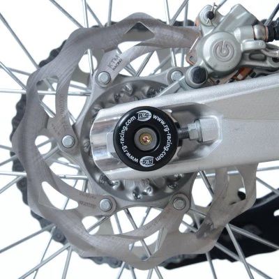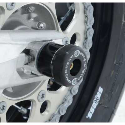The R&G swingarm sliders provide critical protection in the event of a fall or slide. Impact absorbing and abrasion resistant HDPE (High Density Polyethylene) is used to prevent direct contact with the ground and avoid costly repairs. This essential swingarm slider safeguards the swingarm itself, the rear axle, drivetrain and rear brake. The hollow rear axle is utilized with expanding hardware to fit securely without the need for modifications.