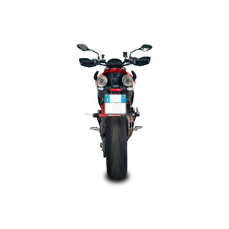 - The extreme look strikes at first sight by displaying a high-mounting double exhaust with right side and left side Grid-O silencers.