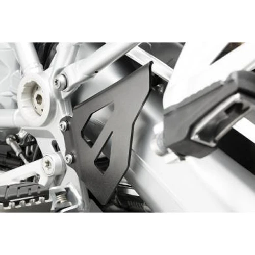 Sw-Motech’s Heel Guards made of aluminum is much larger and stronger than the original OEM plates which prevent damage to the rear brake pump. Laser cut from high-strength aluminum and powder coated black for durability and good looks.