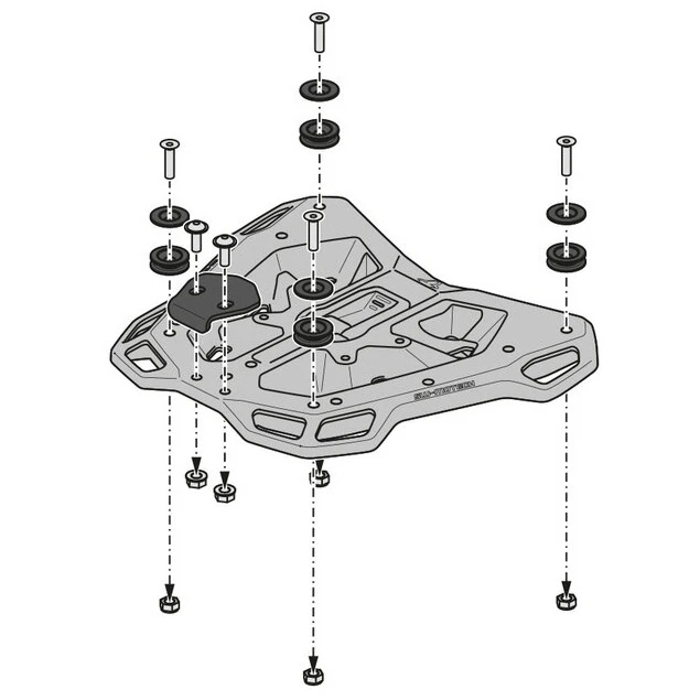 - Twist lock closure of the adapter plate features a safety mechanism that guarantees the secure hold of TRAX topcases, SysBag 15/30 bags with adapter plate and EVO