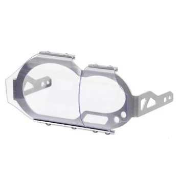 - Sw-Motech Headlight Guards are constructed of laser cut aluminum alloy with a transparent flexible PVC shield.