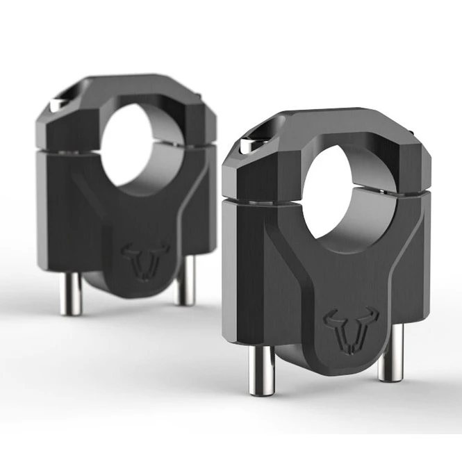 Sw-Motech has raised the bars (literally) with these new 40mm handlebar risers, increasing comfort by providing a more upright riding position. Available in either powder-coated black or bead blasted aluminum for strength and durability.